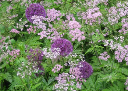 My latest visit to Great Dixter was at the beginning of June, volunteering there for 4 days. The gardens were bursting with colour and had completely filled out from when I last saw them in mid March.This pink cow parsley-Chaerophyllum hirsutum ‘Roseum’- planted through with Allium, was a stunning part of a border in the ‘Barn’ garden.