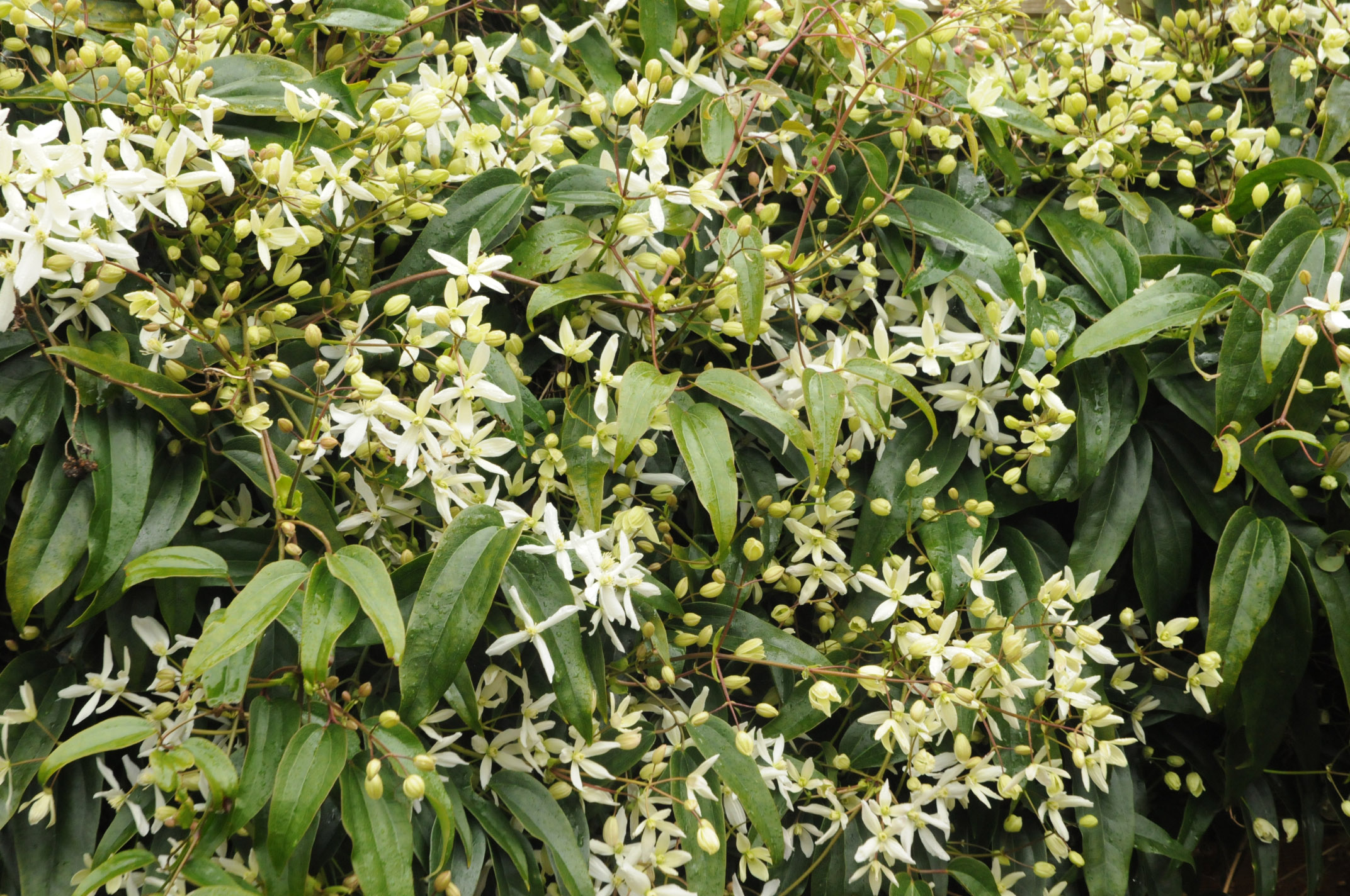 My Clematis armandii is stunning with its mass of star-like flowers, although this year I’ll give it a bit of a prune when it’s finished flowering as its exuberant nature has it climbing up trees and spreading far beyond where I originally planned it to grow. Performs best on a sunny wall. Specialist Clematis growers, Thorncroft nurseries have 3 different varieties of Clematis armandii and an enormous range of the most beautiful Clematis for all seasons and aspects. Definitely worth a look.