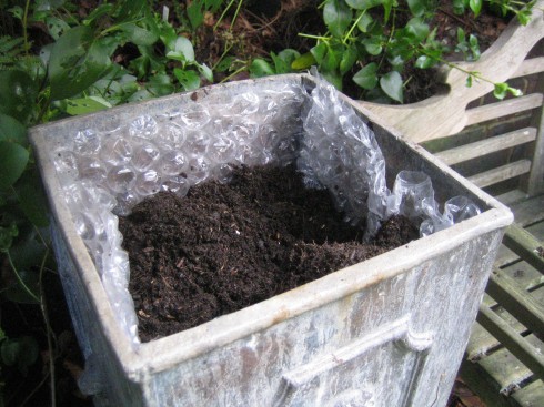 Posted in 'How to', Pots, Still time to | Tagged Bubble wrap, how to avoid overheating roots in pots, How to avoid roots overheating in metal pots, Lining metal pots, metal pots, planters and pots getting too hot, planting in metal pots, protecting plant roots in pots | 6 Comments