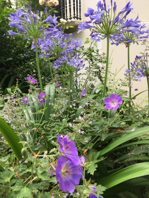 And then more perennials, that come back year after year. Blimey, the world is your oyster. Wether you like planting tasteful whites and blues together  or a creating riot of colour, you can spend a whole lifetime honing your choices of what to plant where, and developing luscious plant combinations. Above are some Agapanthus with Geranium Rozanne.