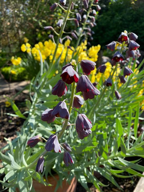 Here’s a marvellous, statuesque bulb that I grew for the first time this year. Fritillaria Persica with gorgeous tall spires of muted, silvery-purple dangling flowers and handsome glaucous foliage (which acts a s a perfect foil to the blooms).  I grew a few together in a large pot (the bulbs are huge!), and they contrasted beautifully with daffodils growing in other pots nearby. A real stunner to act as a focal point in any part of the garden.