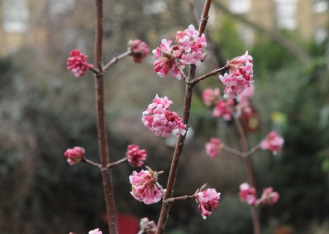 such as the delicious Viburham bodnantense ‘Dawn’ (above),