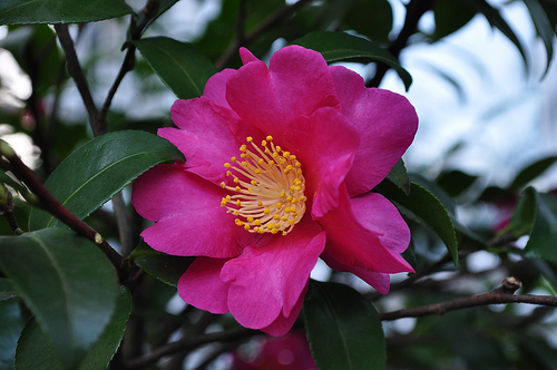 And taking us through November and December is the wonderful shrub Camellia sesanqua, a joyous surprise, both for its loud scent and riotous colour (and also happy in semi-shade),  as autumn turns into winter and the rest of garden looks as if it’s shut up shop for the year.