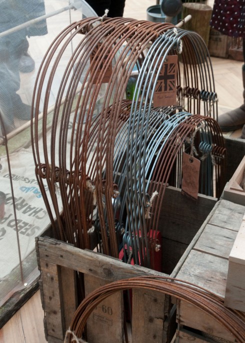 I love this show. I always seem to find what I’m look for, and then some more. I’ve been debating whether I should use a cloche for my winter leaves or not and then I came across this nifty and stylish solution for those with petite growing (and storage) spaces. Some bamboo canes and a bit of fleece (or plastic) added to these rusty wire hoops will do the trick perfectly.