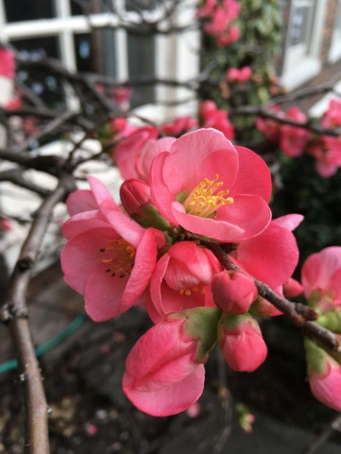 A hedge of Chaenomeles japonica is a gorgeous thing, especially as it flowers so early in the year, bringing very welcome blooms and an early source of nectar for bees.