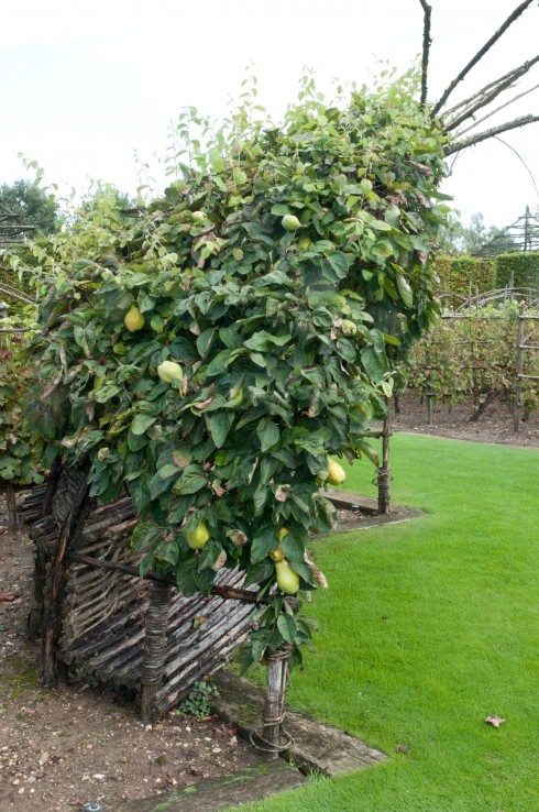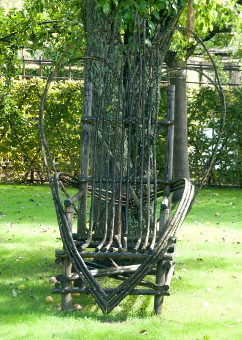 I thought I was getting a bit fancy with my attempt at training a quince tree into a fan shape, but this amazing specimen has been trained as a calming retreat over a woven chair. How bloomin’ delightful is that!