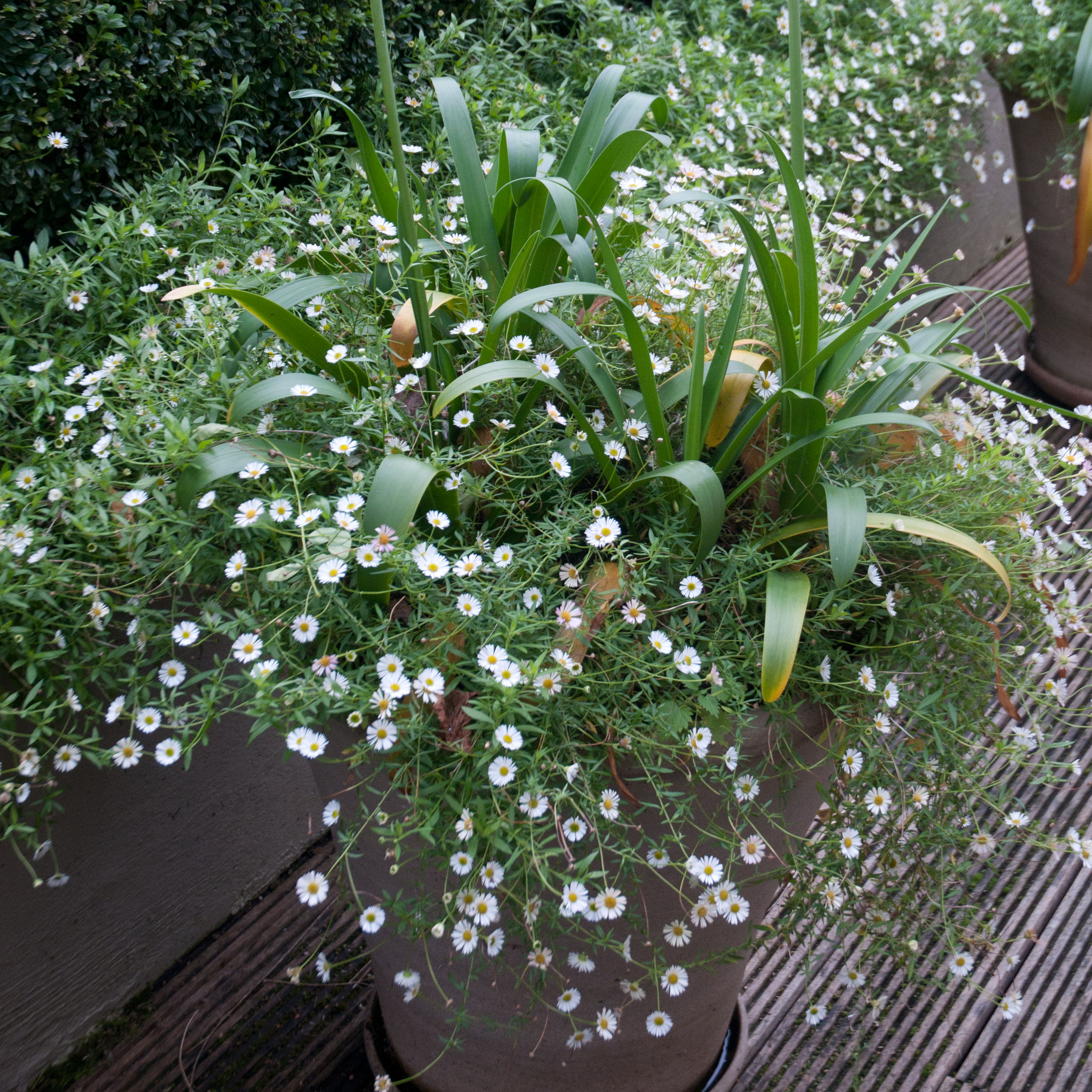 I was out gardening with friend Lizzie on a gloomy Wednesday afternoon and was hugely cheered and delighted by the sight of this Erigeron (karvinskianus) in pots.