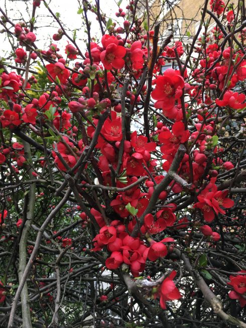 rich Chaenomeles blooms (aka flowering quince) for late February,
