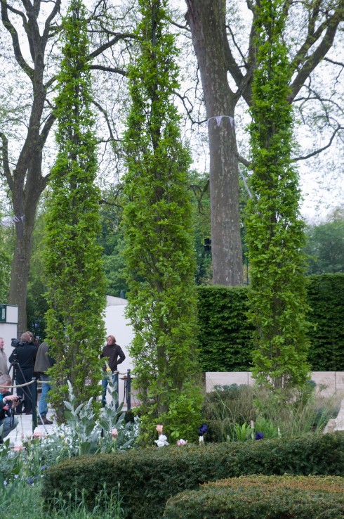 Quercus fastigiata ‘Koster’ on Ulf Nordfjell's Chelsea Garden 2013