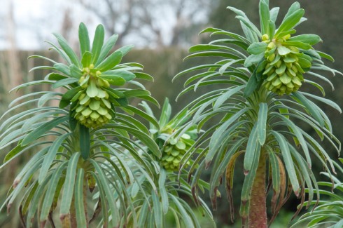 Add the vibrant green of the flower heads of a Euphobia foetidus, E.robbiae or E.wulfenii (above), and you can really create a very lively spring grouping indeed.