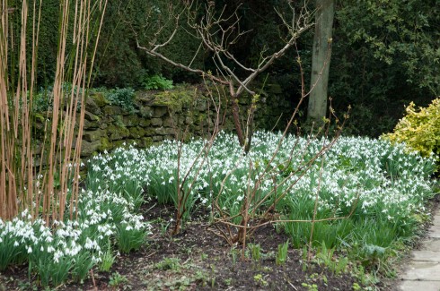 and Snowdrops (Galanthus), in many shapes and sizes, (and available from the Great Dixter Nursery!) are carpeting the ground in many of the borders.