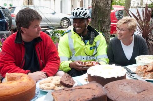 This is the second year of our community veg growing project and many neighbours got together last weekend in a front garden in North London to pick up their free seeds and to discuss the veg growing scheme for this year over tea and cakes.