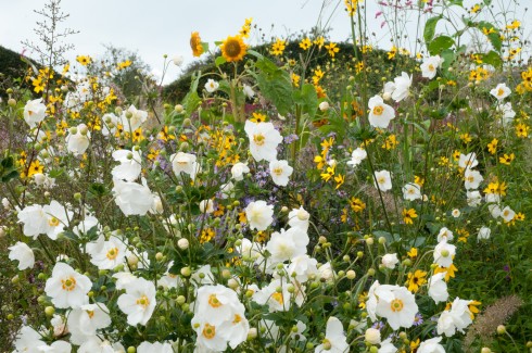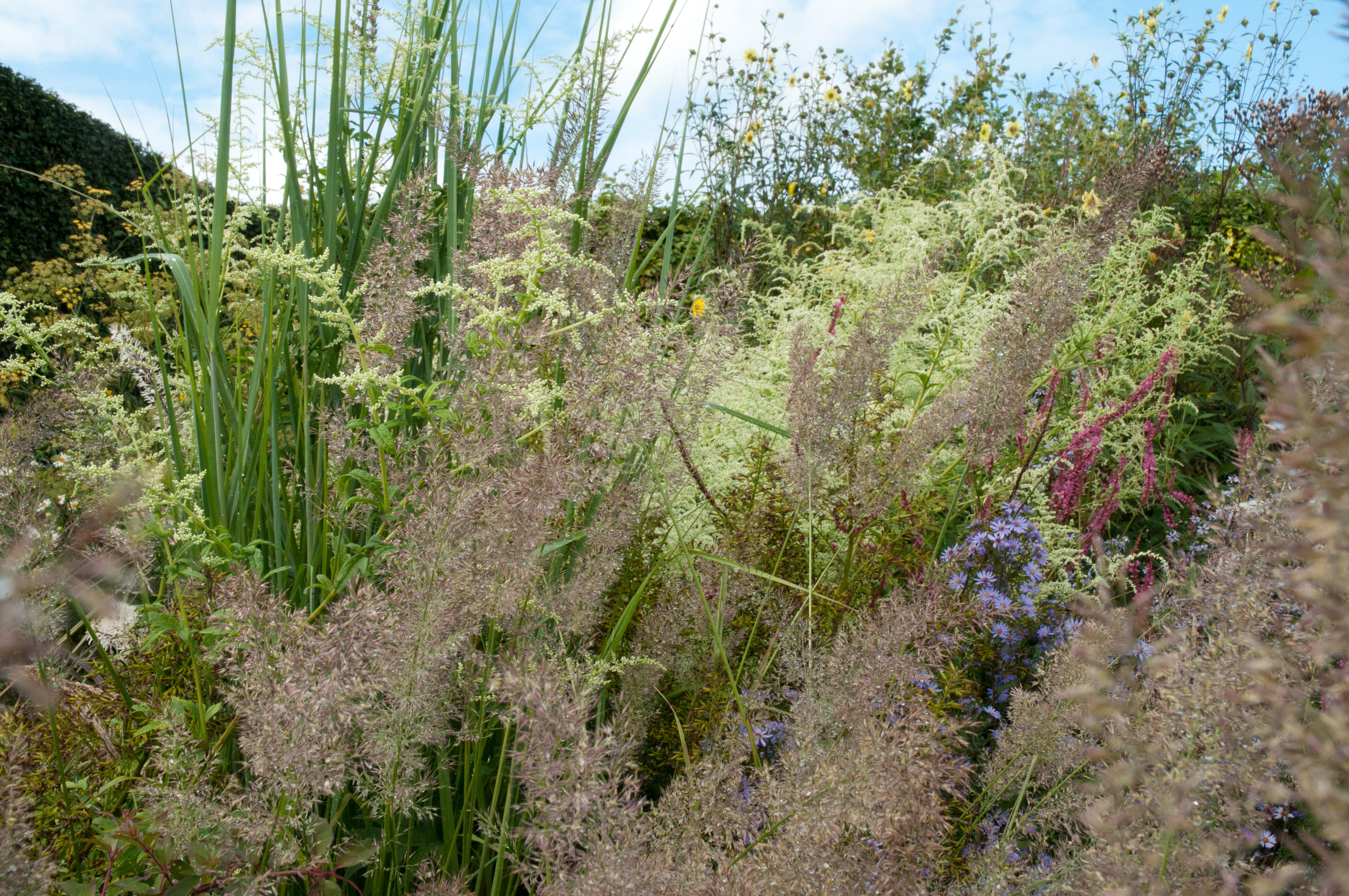 Nine separate gardens are planted to perform at their best at different times of the year, and arriving in mid September, the Autumn garden was a dream to enter into. I almost felt hugged by the plants as I slowly wandered amongst the swaying grasses, gazed at the Persicarias (in all shapes and sizes), marveled at oodles of Verbena bonariensis and took in the heady scent of and glowing wands of Cimifuga atropurpurea. There’s a lot packed into this garden! Visiting a friend’s garden in Walthamstow recently, at over 6ft tall, he explained that he liked to plant huge grasses and other large plants as he like the sense of feeling small and contained. I think he would love to be in this garden.