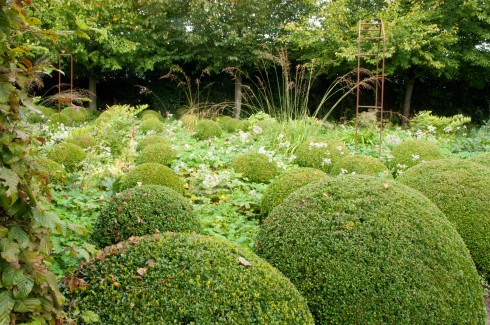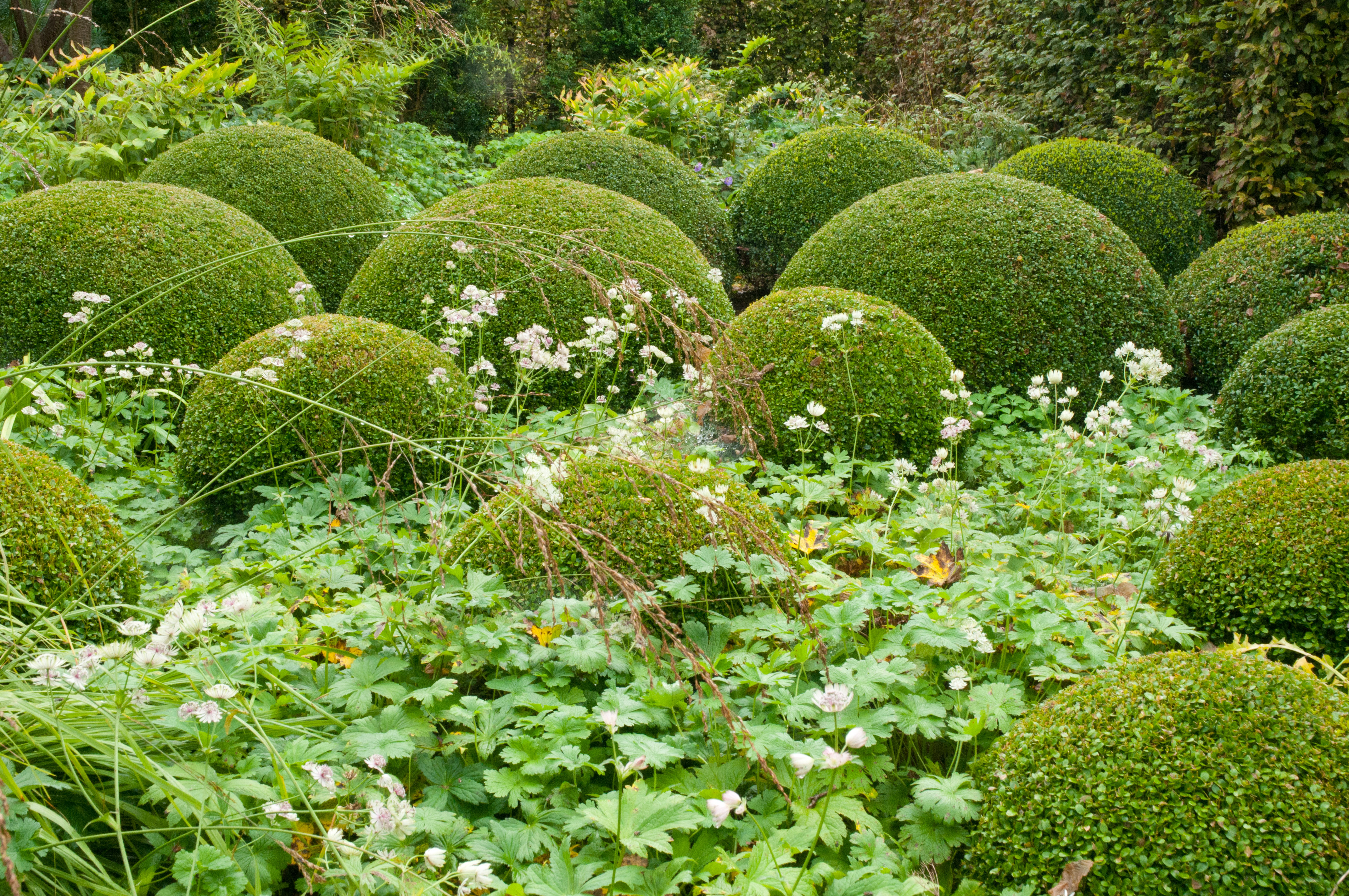 Tearing myself away from the Autumn garden, there was plenty more to see, with a strong sense of design running throughout the gardens. The spring garden was packed  with Astrantias in their second flush amongst huddles of sensuous box balls-