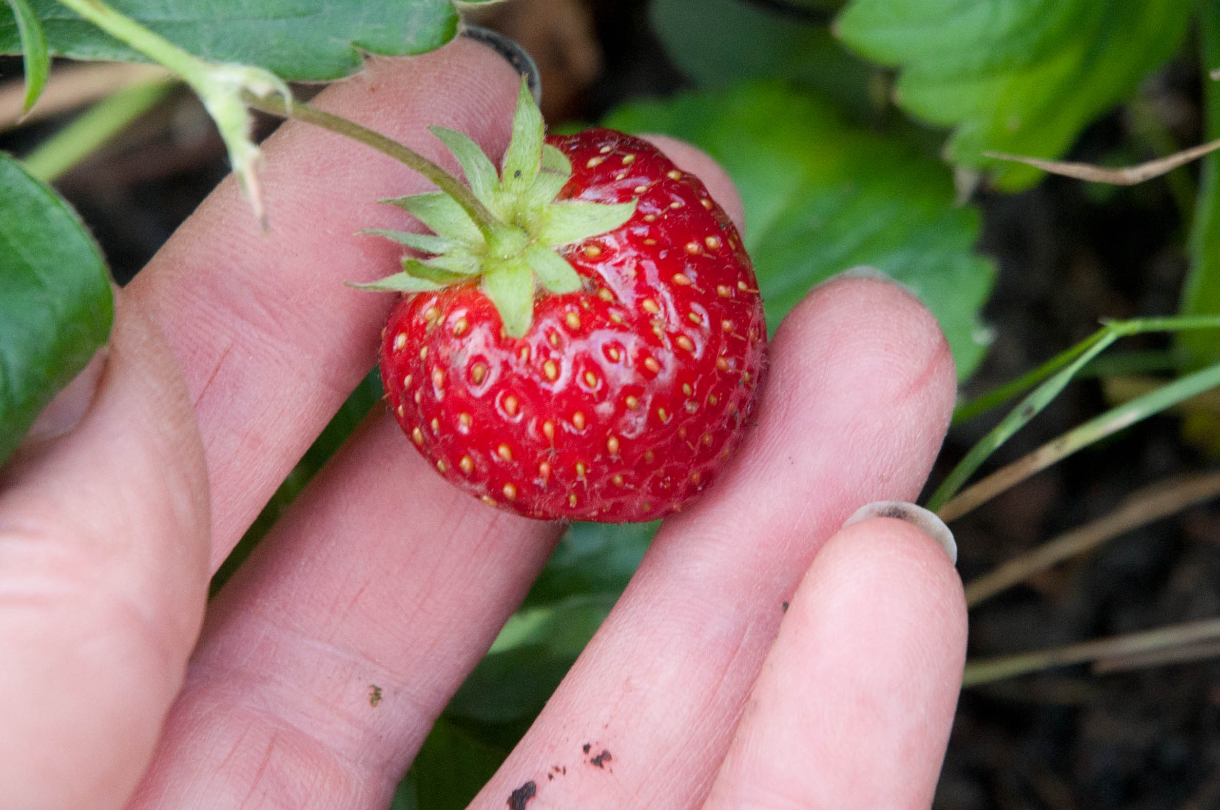 When in France last Easter, I bought a few wild strawberry plants (or so I thought) at a market stall and was expecting to see small intense berries growing throughout the summer.  In fact, Mara des Bois strawberries are something in between cultivated and wild varieties, theoretically giving you medium-sized fruits from July right through until October. Yes, October! If I’d remembered the name of what I’d bought (I knew it had ‘bois’ in there somewhere), and if I’d done a little research, I wouldn’t be so surprised. But the fact that these berries have just kept on fruiting all through summer until now has astounded me. I’ve enjoyed every bite and have shared these berries with equally delighted neighbours who see what I’ve been up to. Another plus about these berries is that they don’t need full sun either. I just popped them in on the edge of a flower border, under some wild roses. What a find!