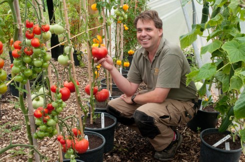 Back at the nursery, I asked Stephen why some of my fruit had developed ‘Blossom end rot’ in my pot grown outdoor tomatoes. Was this down to my poor watering habits (sometimes watering no-times a day regime)? Stephen cheered me up by saying that it could well be down to the nutrient make up in the tomato growbags I use. Not a fan of bought growbags, most need lime added to reduce the acidity of the soil. Acidity of the soil has a huge effect on fertility because it controls how available nutrients are to your crops and ‘Blossom end rot’ is down to a lack of available Calcium during the growing process. My poor watering habits don’t help either, so next year I think I’ll stick to my own home-grown compost, grow plants in the ground to reduce the risk of the roots drying out and train the plants as cordons for a larger crop. Could this be the end to my tomato growing problems?