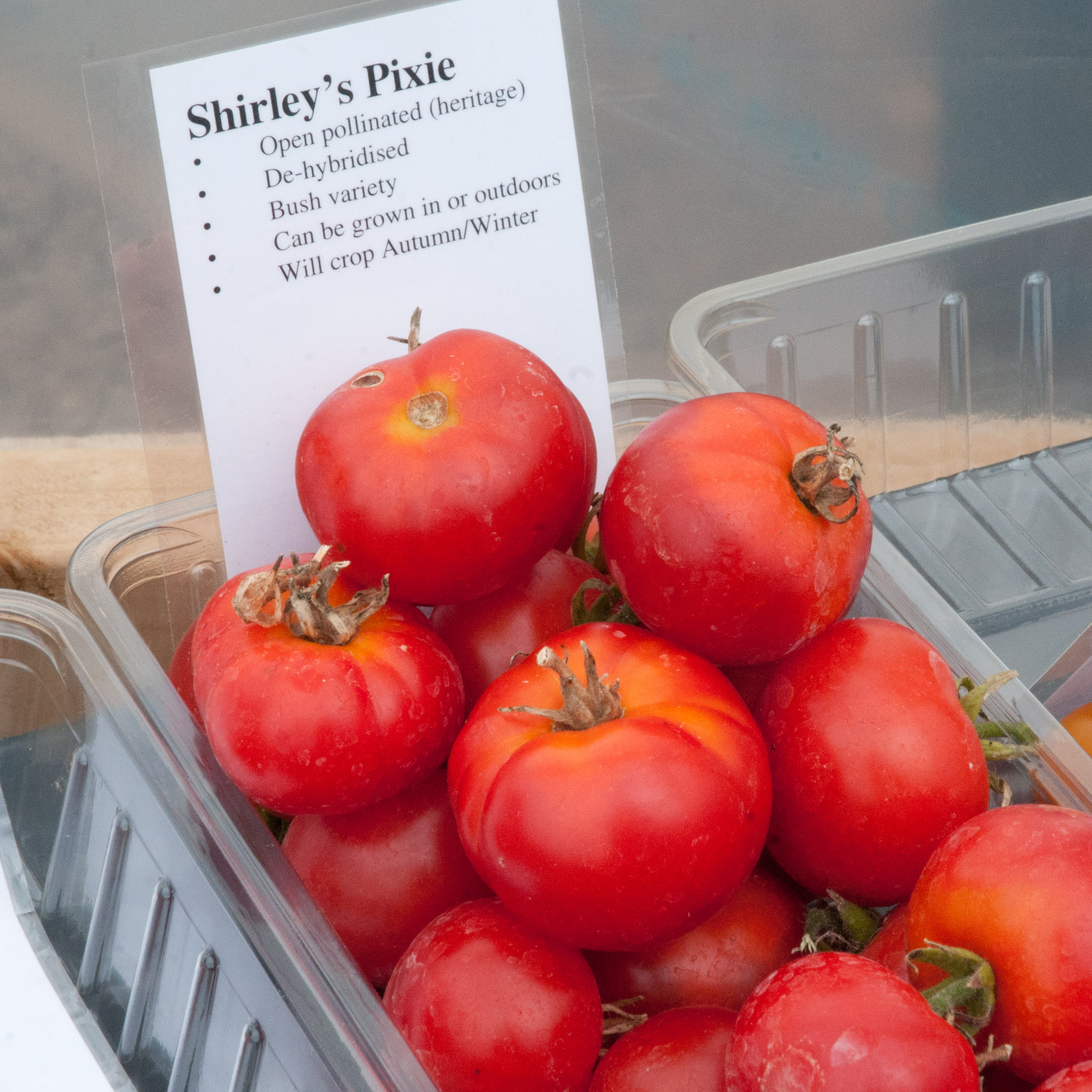 More up my street was ‘Shirley’s Pixie’, a tomato that Stephen described as idiot proof. Good grown inside or out and also a short day tomato variety, which means it can be bought inside in autumn and will continue to crop until Christmas. Amazing!