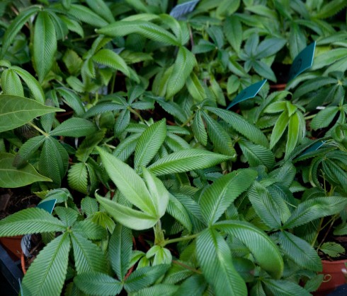 And finally, couldn’t resist buying a Rubus lineatus on the Crug Farm Nursery stand for its crinkly yet soft palmate leaves. Rubus is such a great family of plants including the Japanese wineberry, Rubus phoenicolasius, Blackberries, Rubus fruticosus and I did spot a rather intriguing plant,