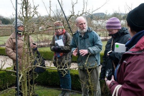 Last weekend, armed with my trusty secateurs, I braved the icy winds and ventured out of the big city to West Dean Gardens near Chichester in W.Sussex. Thought I’d booked myself on to a pruning course, but in fact the ‘Training trees and shrubs’ course encouraged only a minimal use of secateurs when working in the garden.